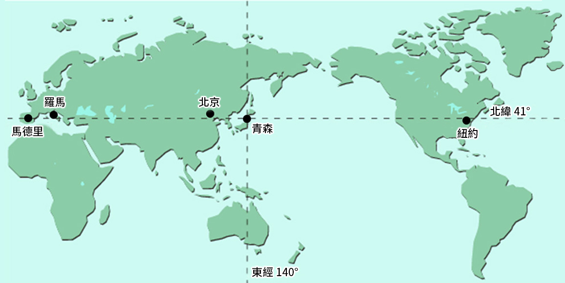 青森縣位於本州最北端,北緯40度12分至41度33分,東經139度30分至141度41分之間,與紐約、北京、羅馬、馬德里幾乎位於同一緯度。